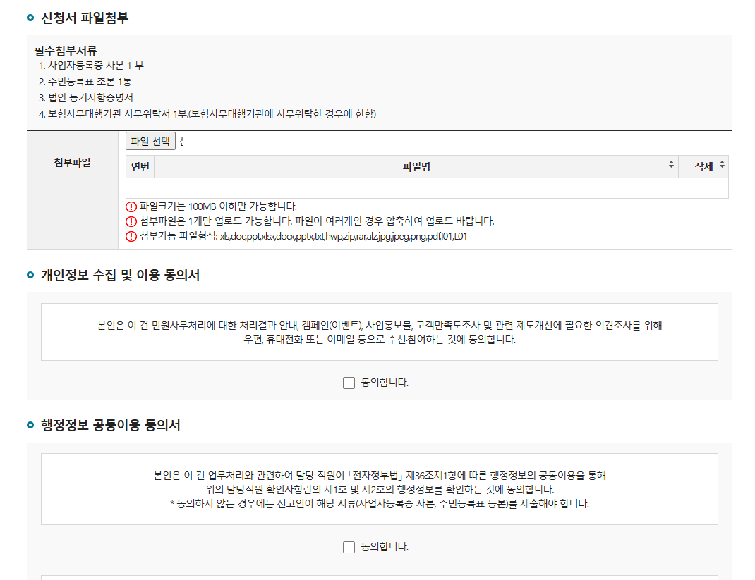 - 사업자등록증, 주민등록초본 등 필수서류 압축 파일로 제출