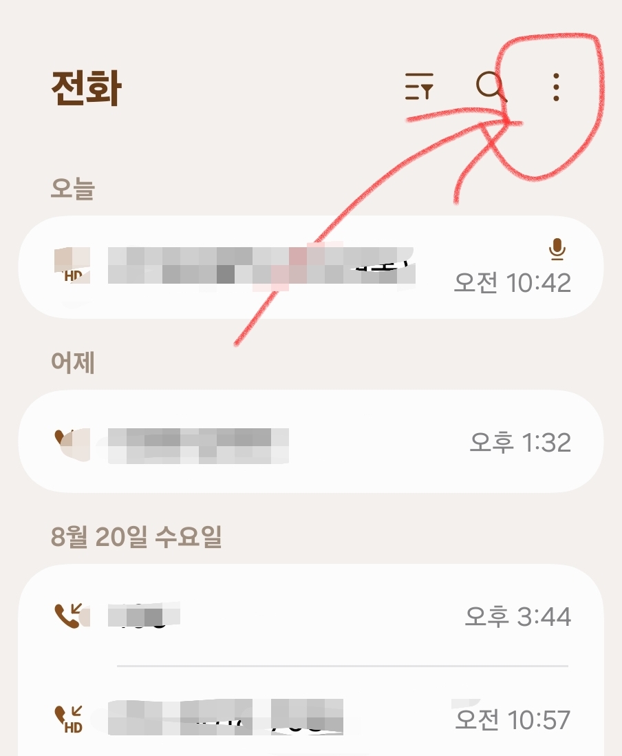 메뉴에서 ‘통화 녹음’ 항목을 찾아 탭합니다.