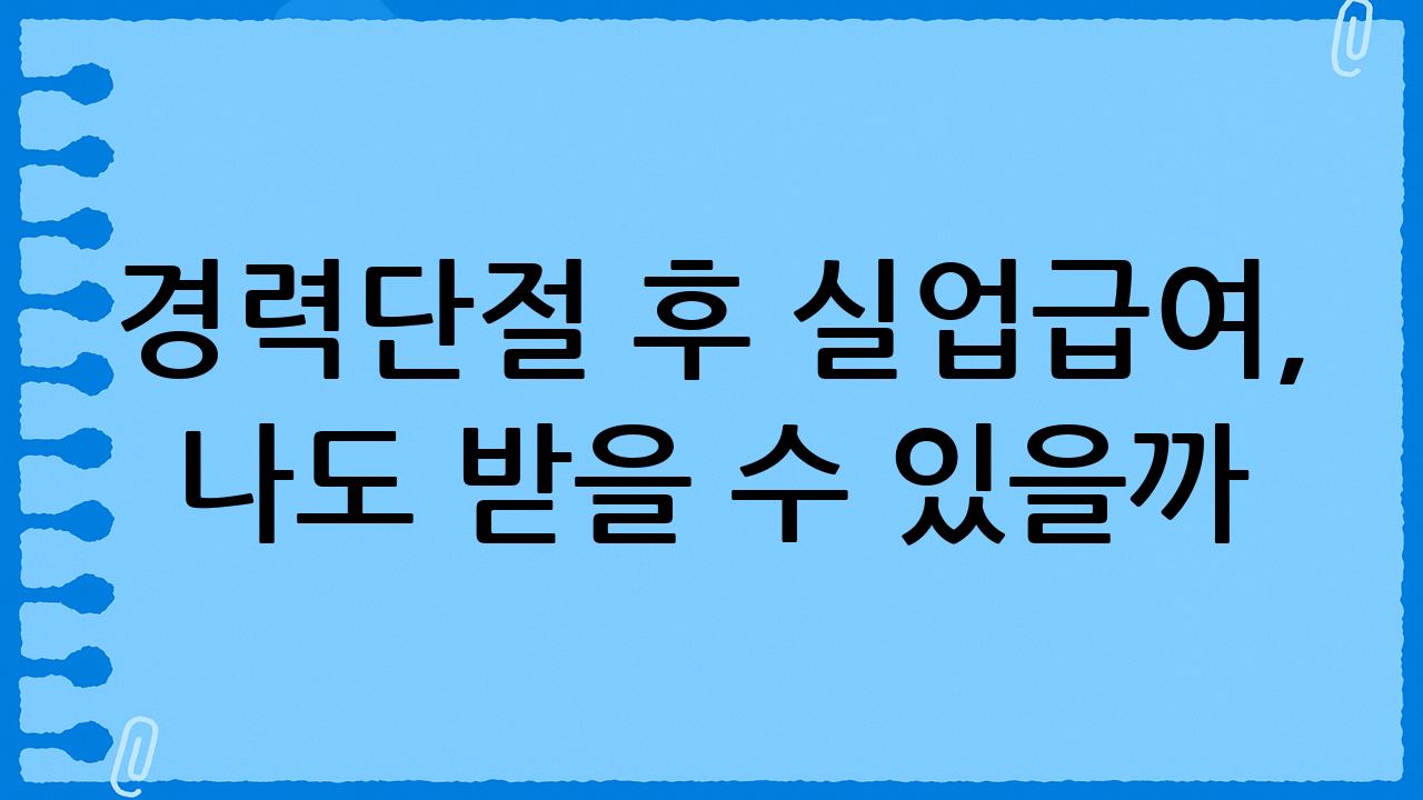 경력단절 후 실업급여, 나도 받을 수 있을까? 완벽 가이드