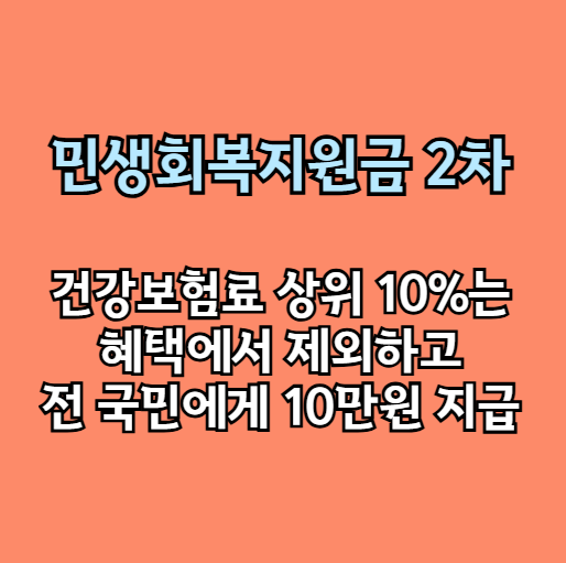 민생회복지원금 2차 지급은 소득 상위 10%를 제외한 국민 전체에게 지급되며,