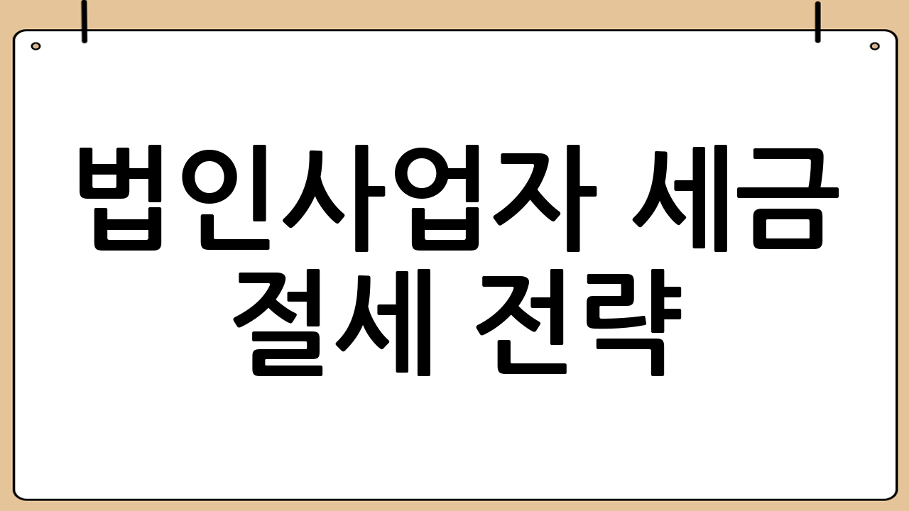 법인사업자 세금 절세 전략: 똑똑하게 세금 줄이기