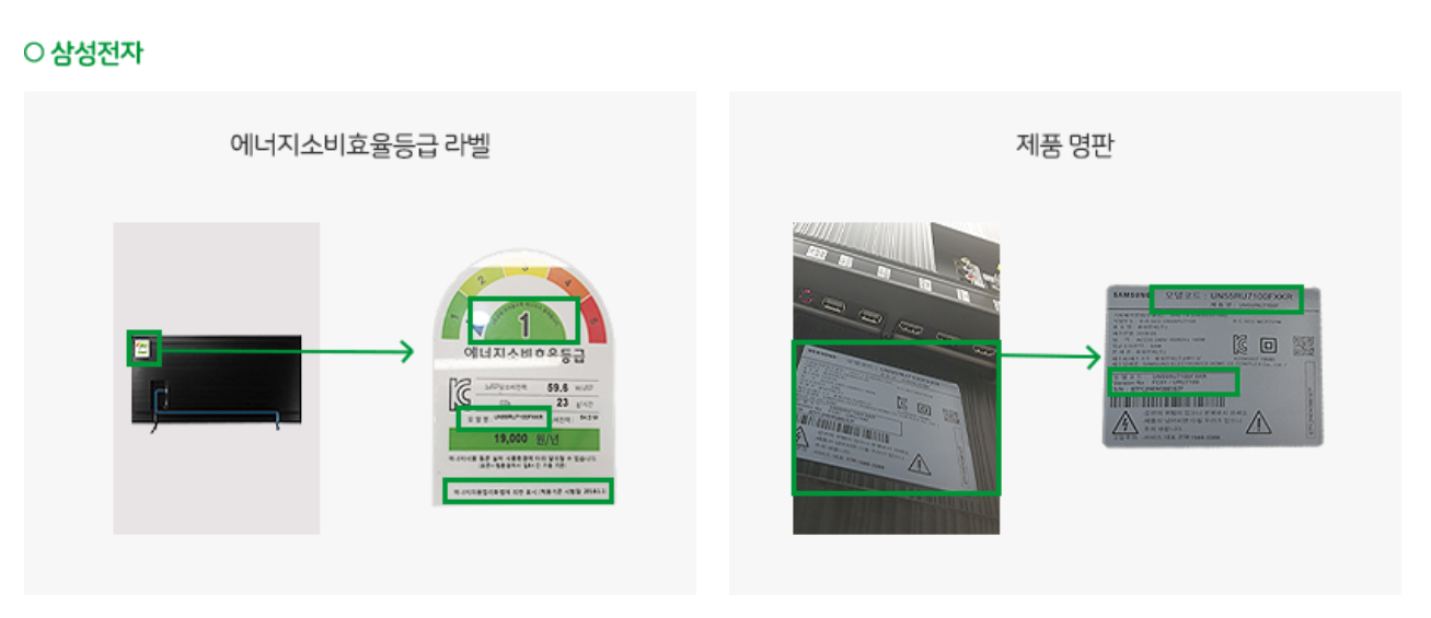 - 에너지효율등급 라벨 사진 (등급·적용기준일 확인 가능)