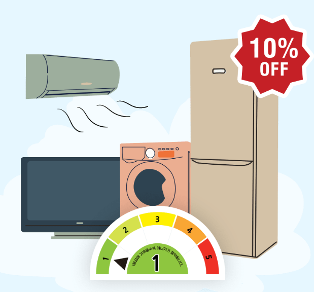 에너지 효율 1등급(일부 품목 2등급) 가전제품을 구매하면