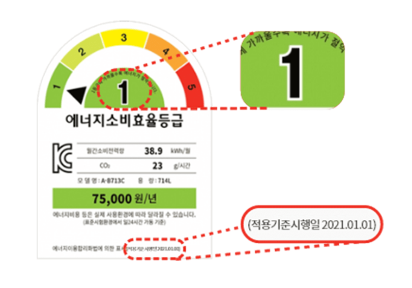 에너지소비효율등급 라벨과 적용기준일을 확인하세요.
