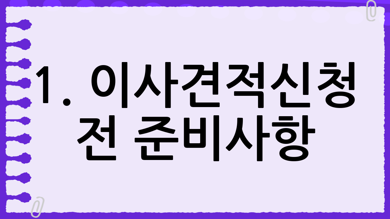 이사견적신청 전에 몇 가지 준비를 해두면 더욱 정확하고 효율적인 견적을 받을 수 있습니다. 이는 불필요한 비용 발생을 줄이고, 이사 당일 혼란을 최소화하는 데 도움이 됩니다.