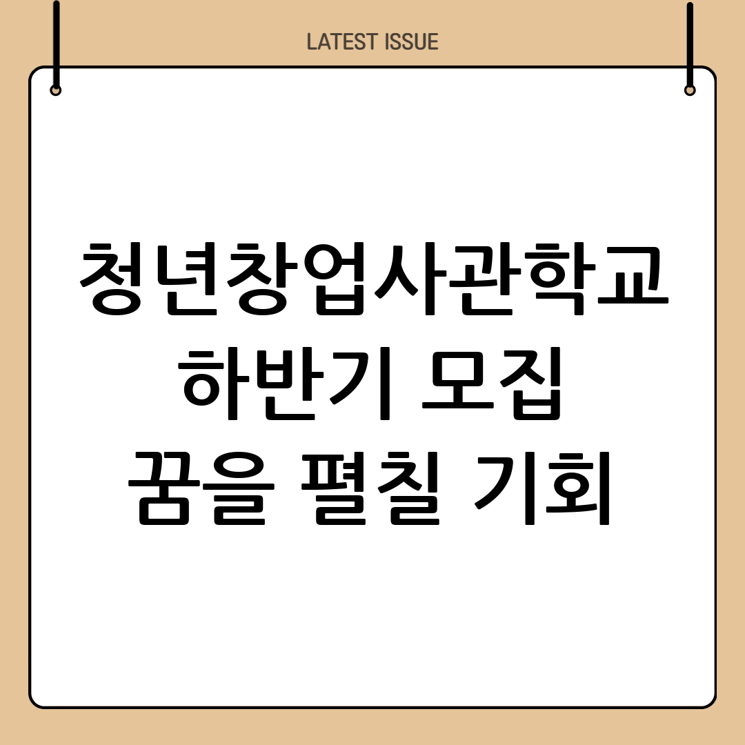 창업을 꿈꾸는 청년들에게 희소식이 있습니다! 중소벤처기업진흥공단에서 운영하는 청년창업사관학교에서 하반기 입교생을 모집합니다. 혁신적인 아이디어를 가진 청년이라면 누구나 도전할 수 있는 기회입니다. 지금 바로 자세한 내용을 확인하고, 꿈을 향해 한 걸음 더 나아가세요!