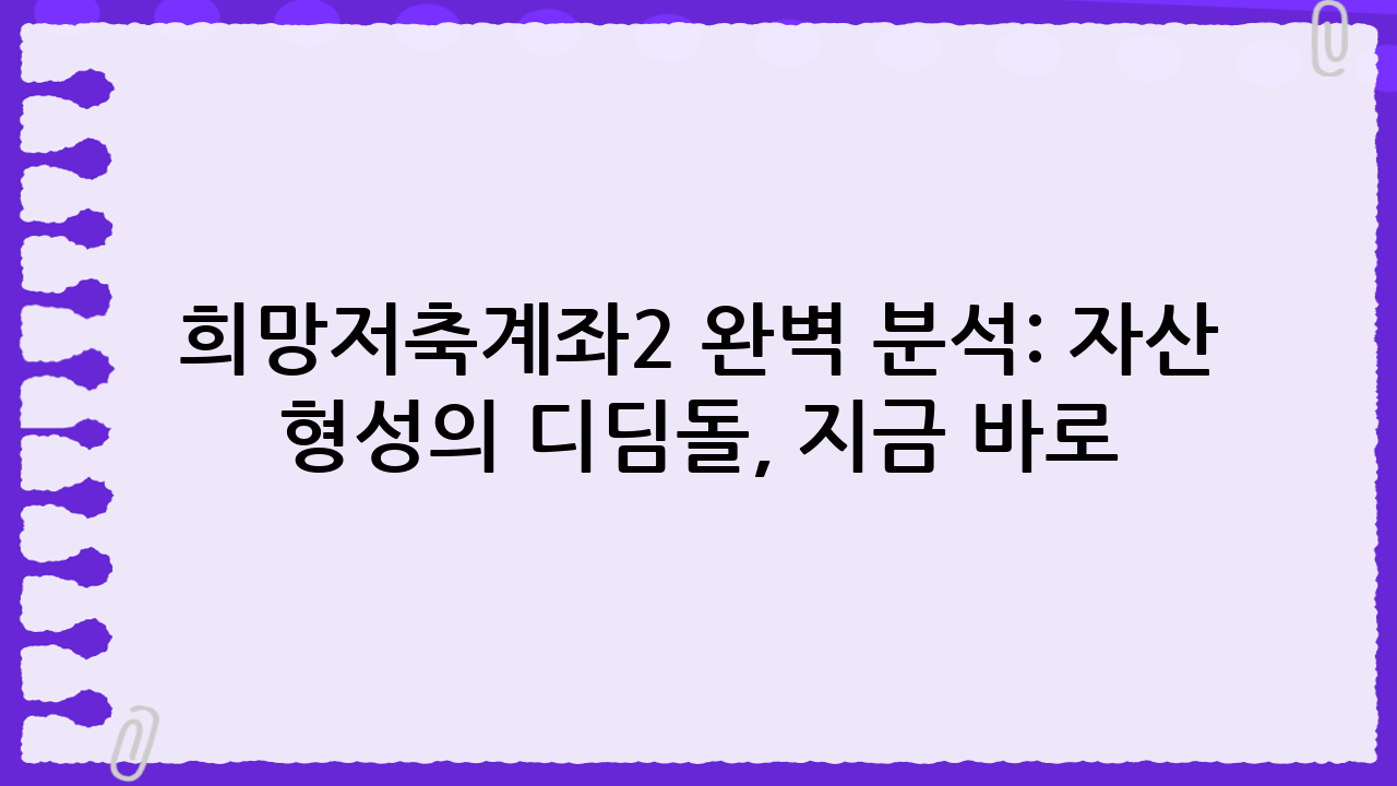 희망저축계좌2 완벽 분석: 자산 형성의 디딤돌, 지금 바로 시작하세요!