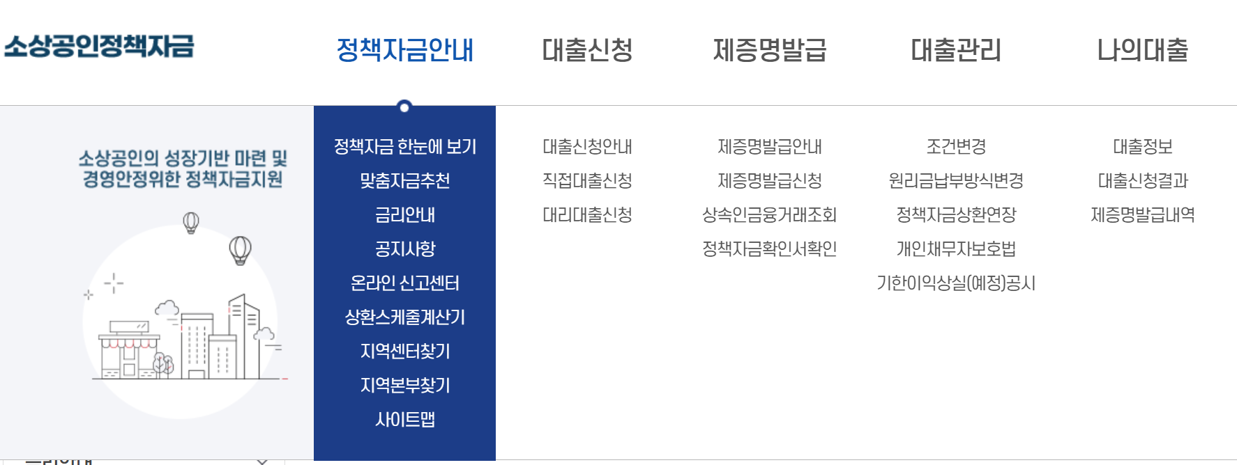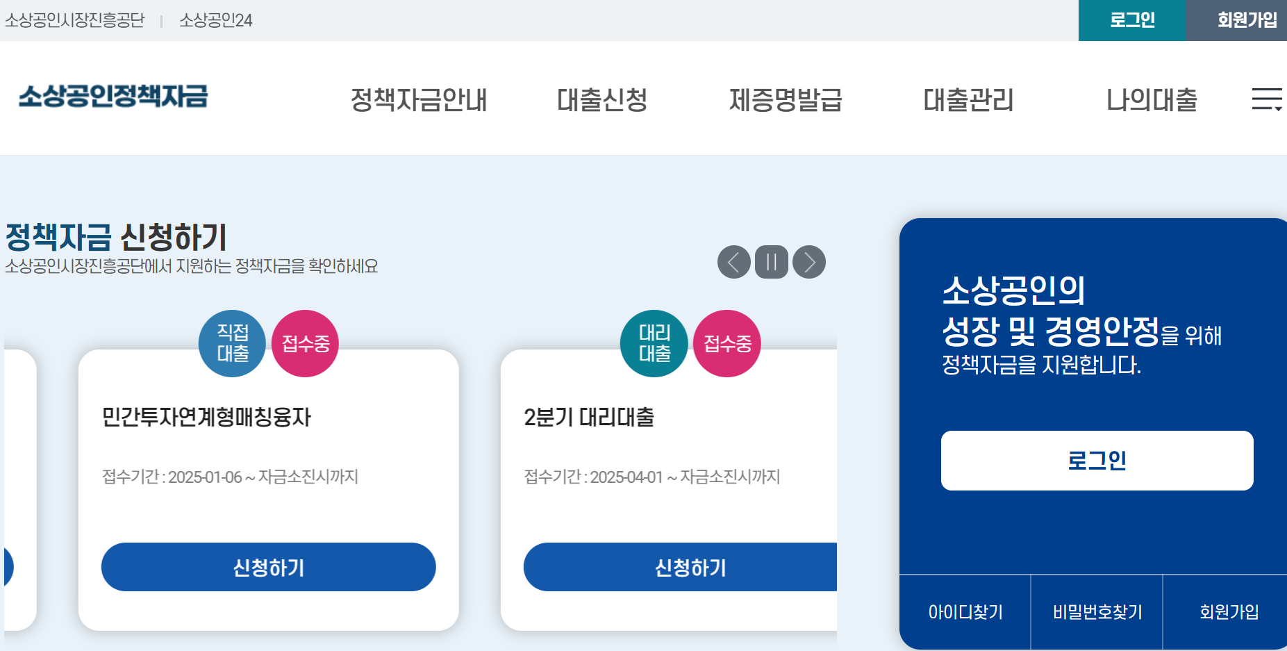 - 소상공인정책자금 누리집 접속